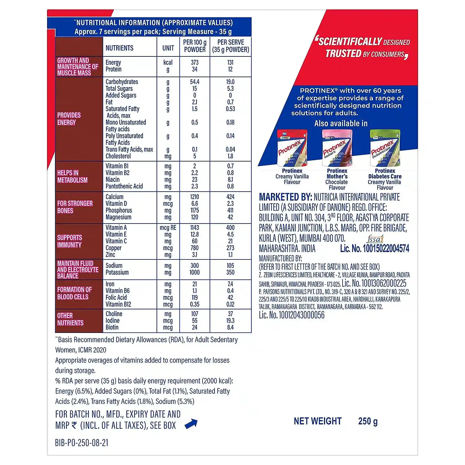 PROTINEX TASTY CHOCOLATE FLA 250GM